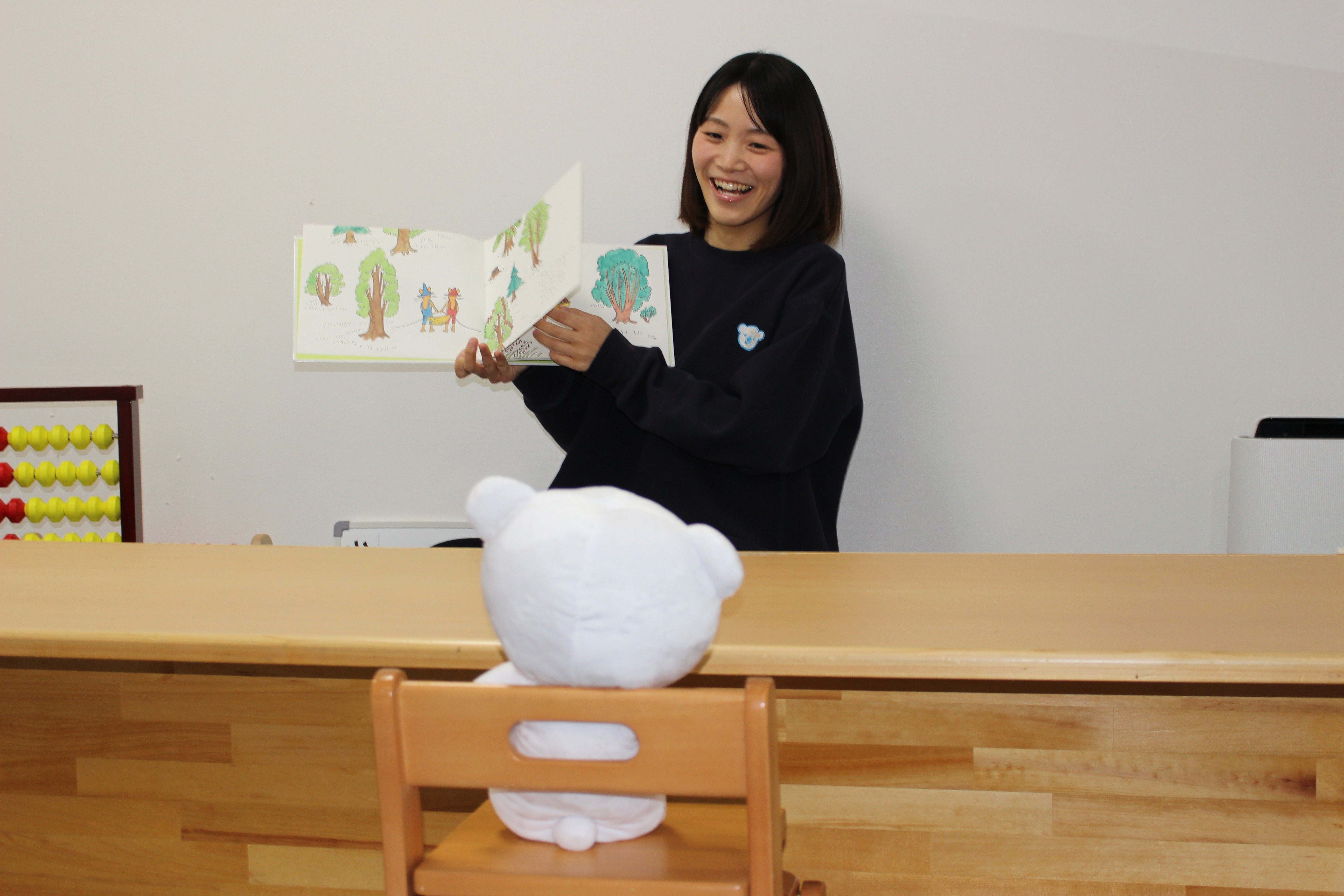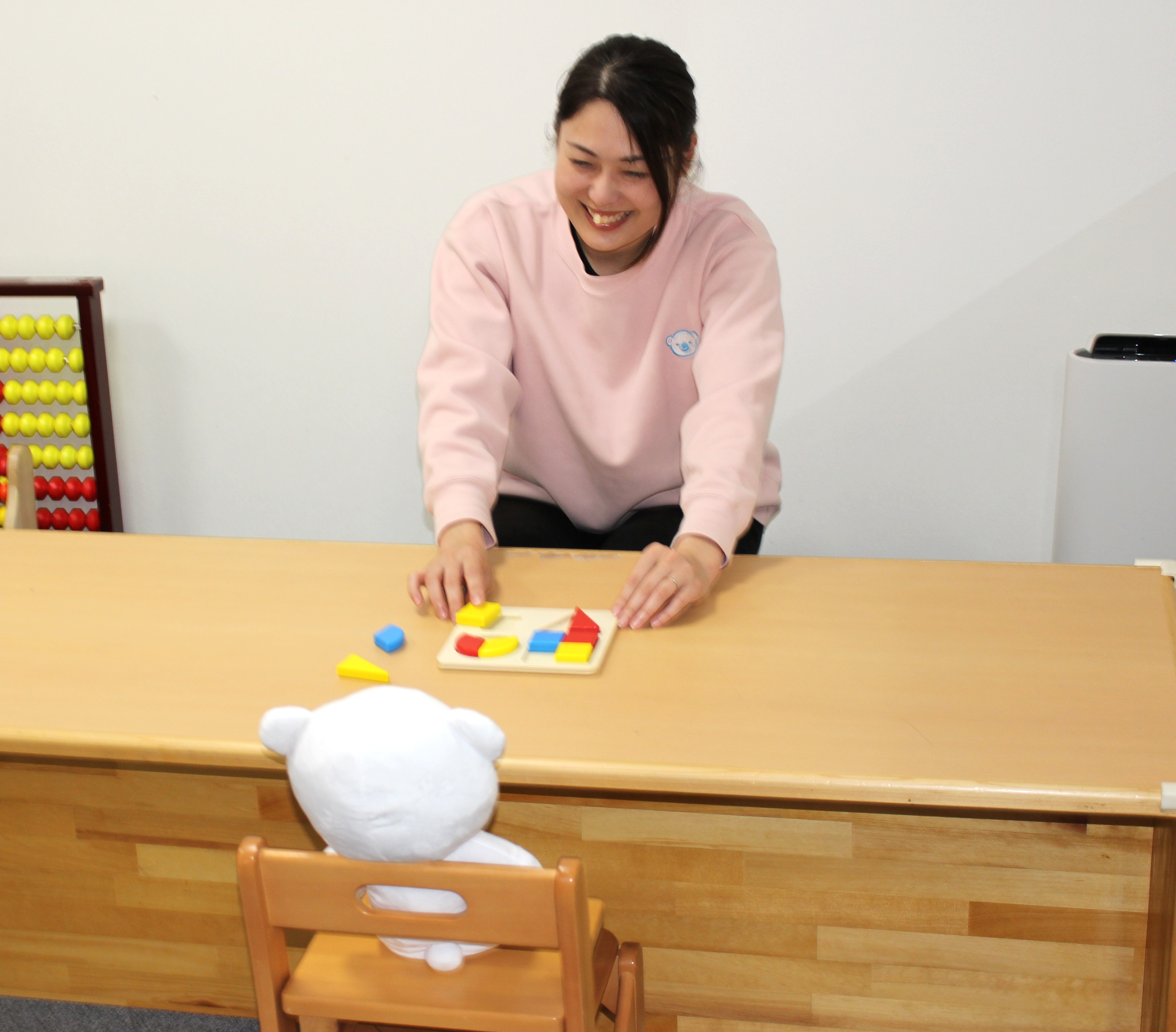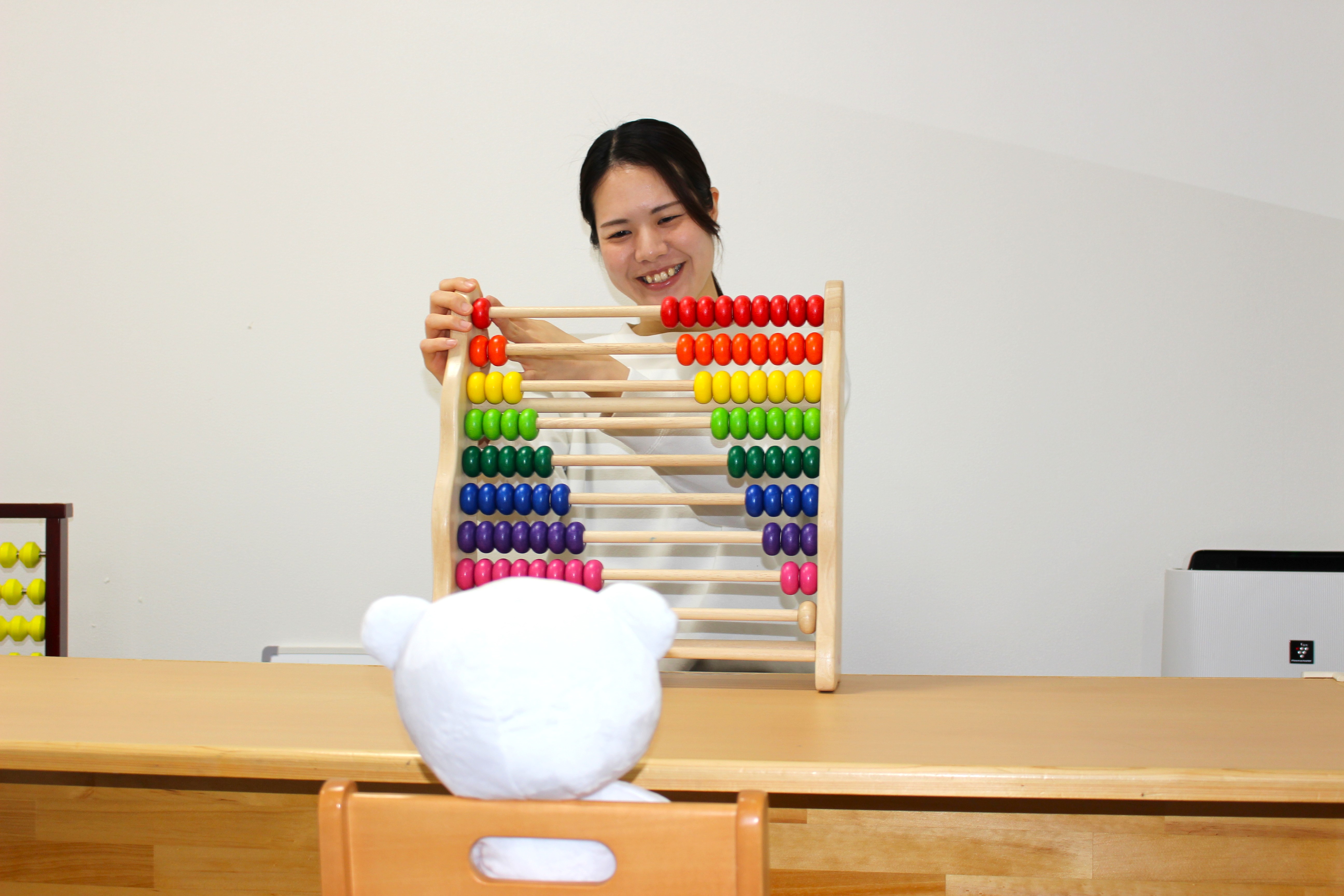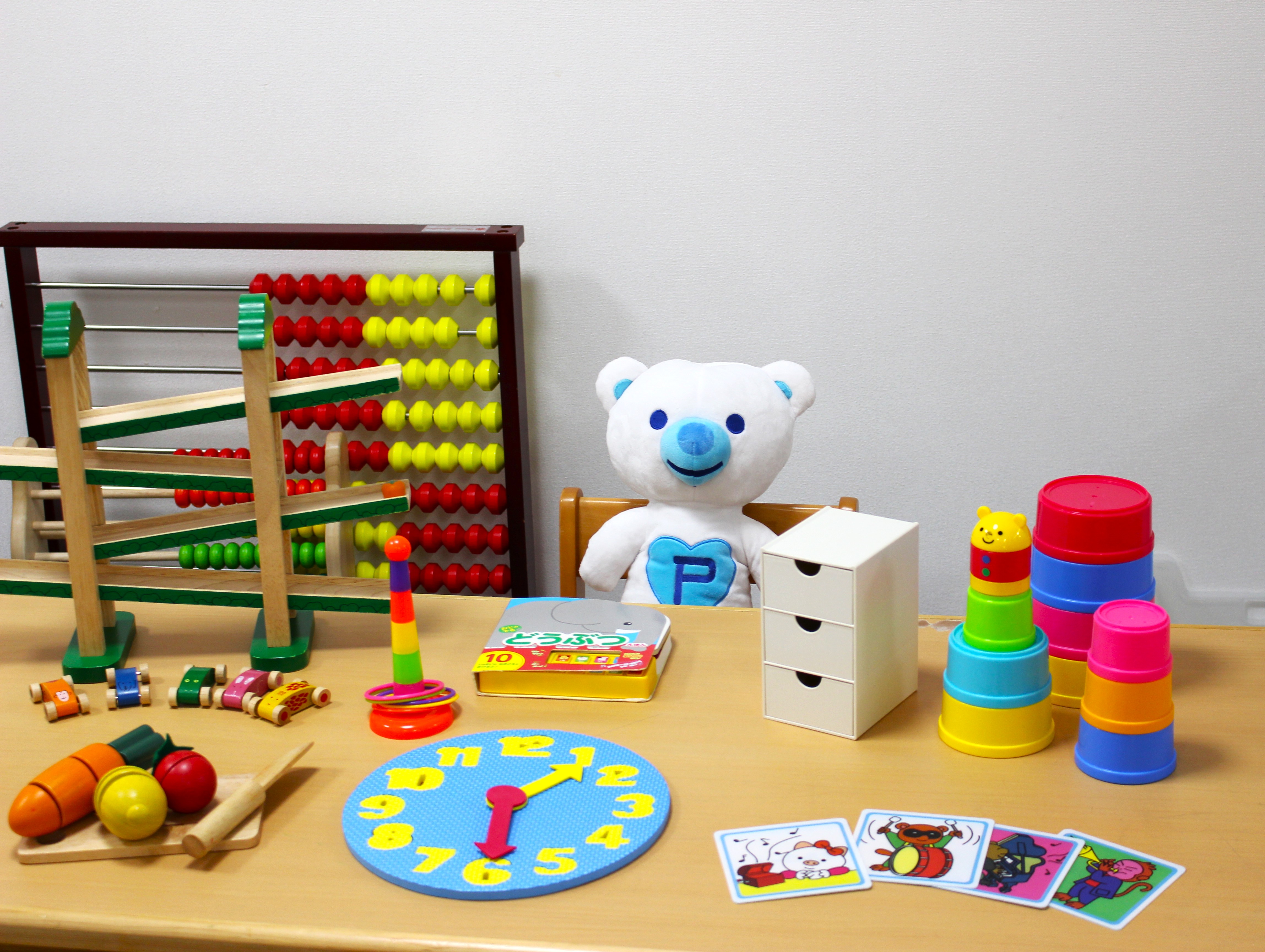 コペルプラスでは、預かり型ではなく、様々な教材やフラッシュカード等を使って指導員と1対1の【個別療育】や、就学に向け【着席型の小集団の療育】を行っております。